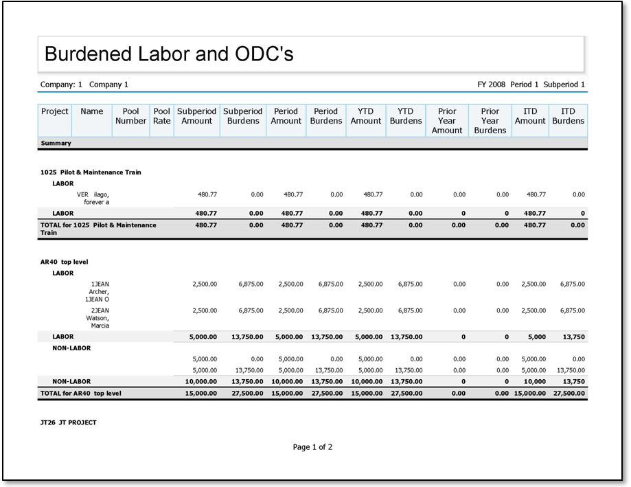 Sample Burdened Labor and ODC's report.
