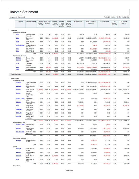 Sample Income Statement  report.