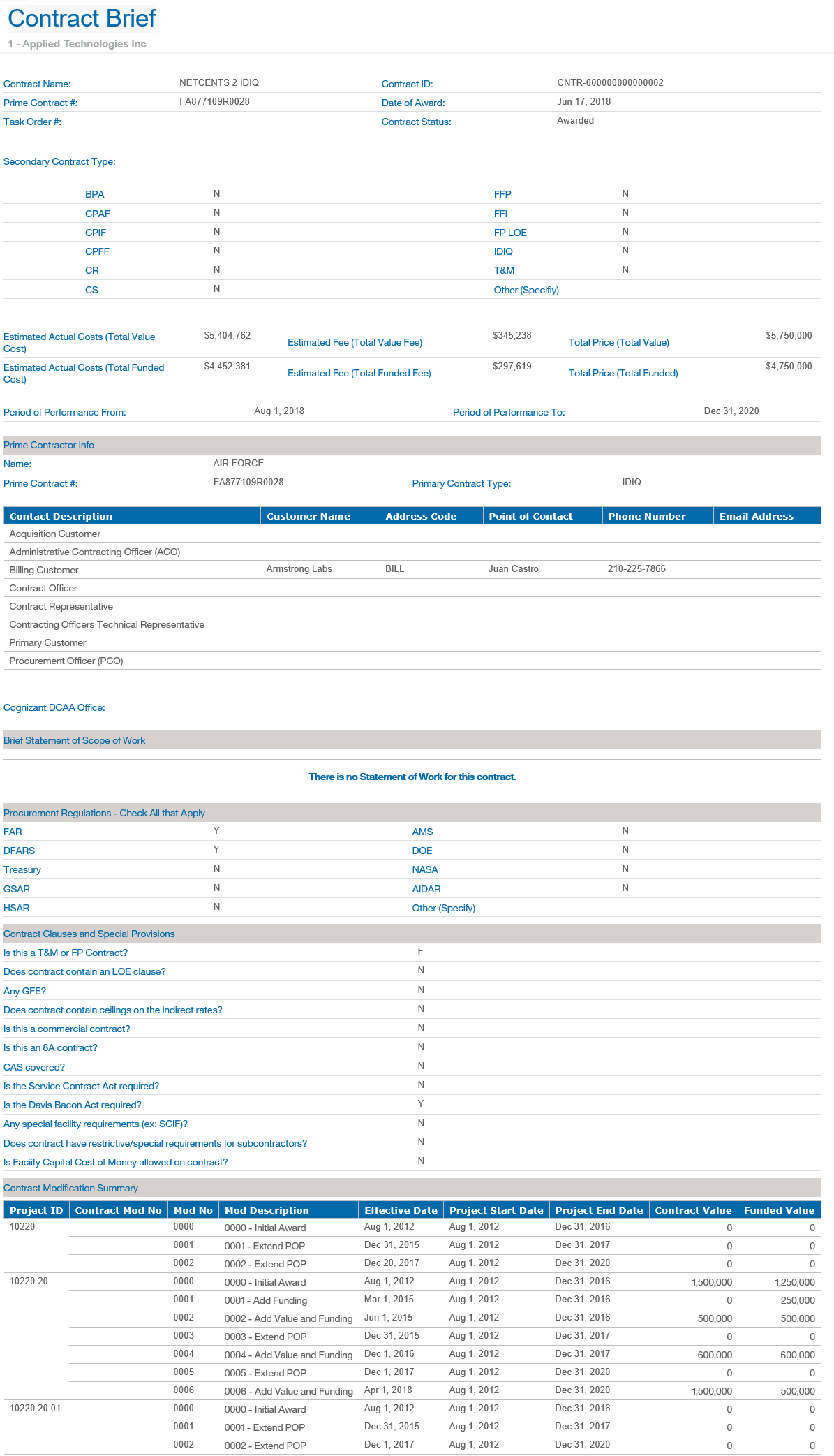 This is a sample Contract Brief report.