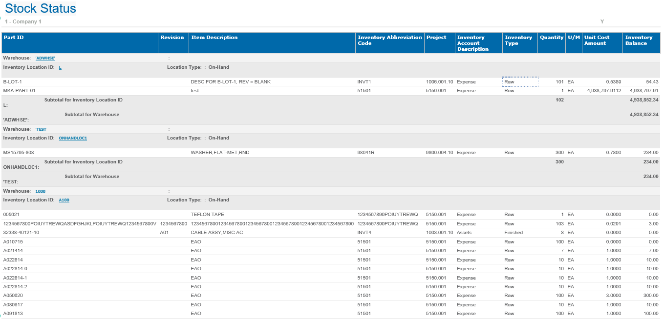 This is a sample Stock Status report.