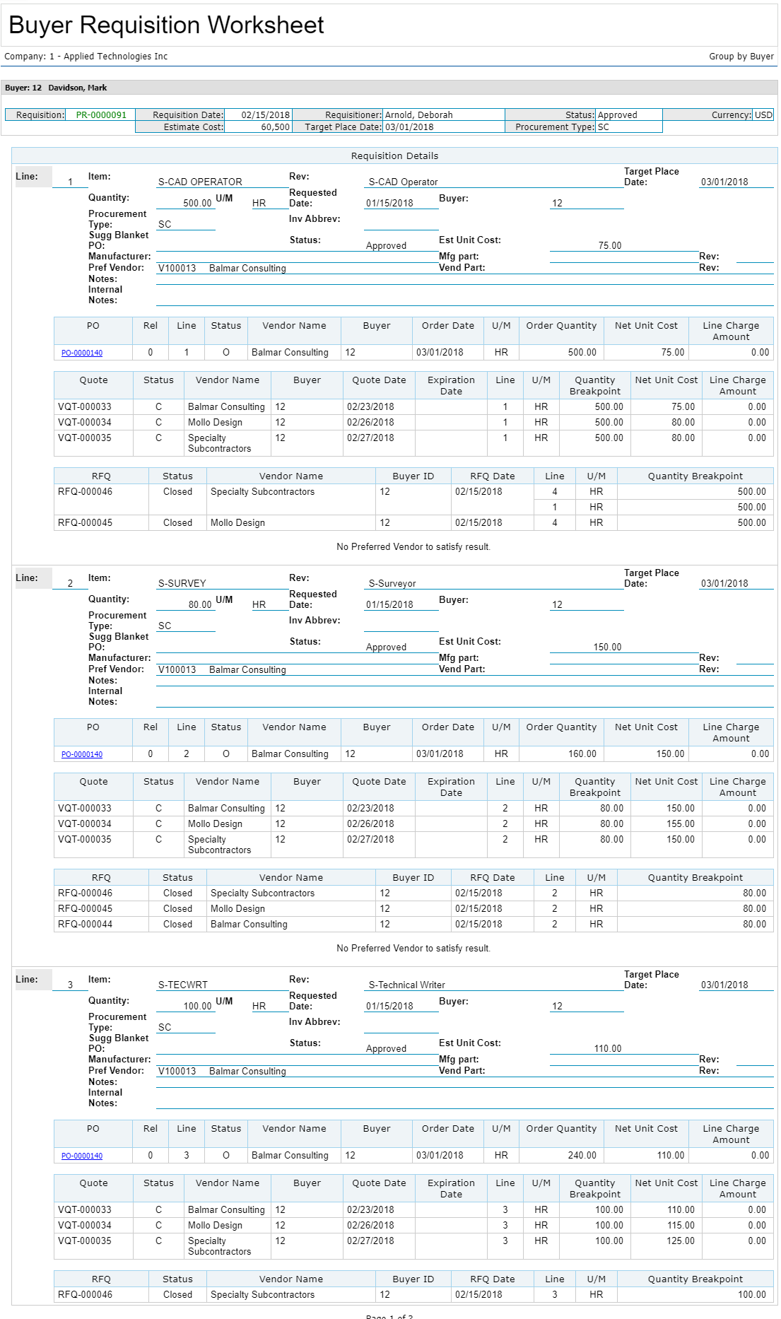 The following is a sample Buyer Requisition Worksheet.