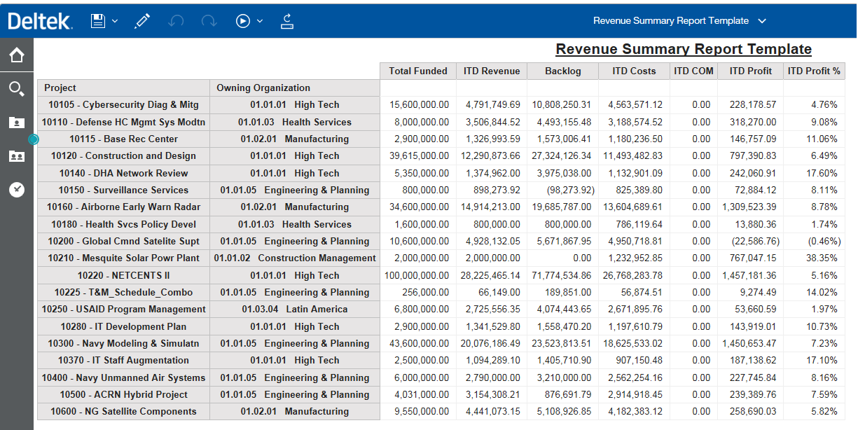 Parent Topic: Revenue Summary Report Template