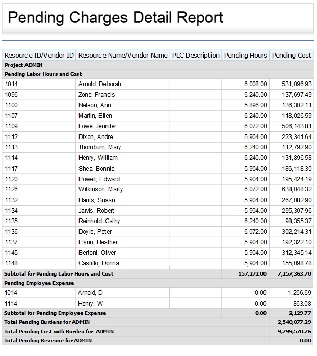 Pending Charges Detail Report