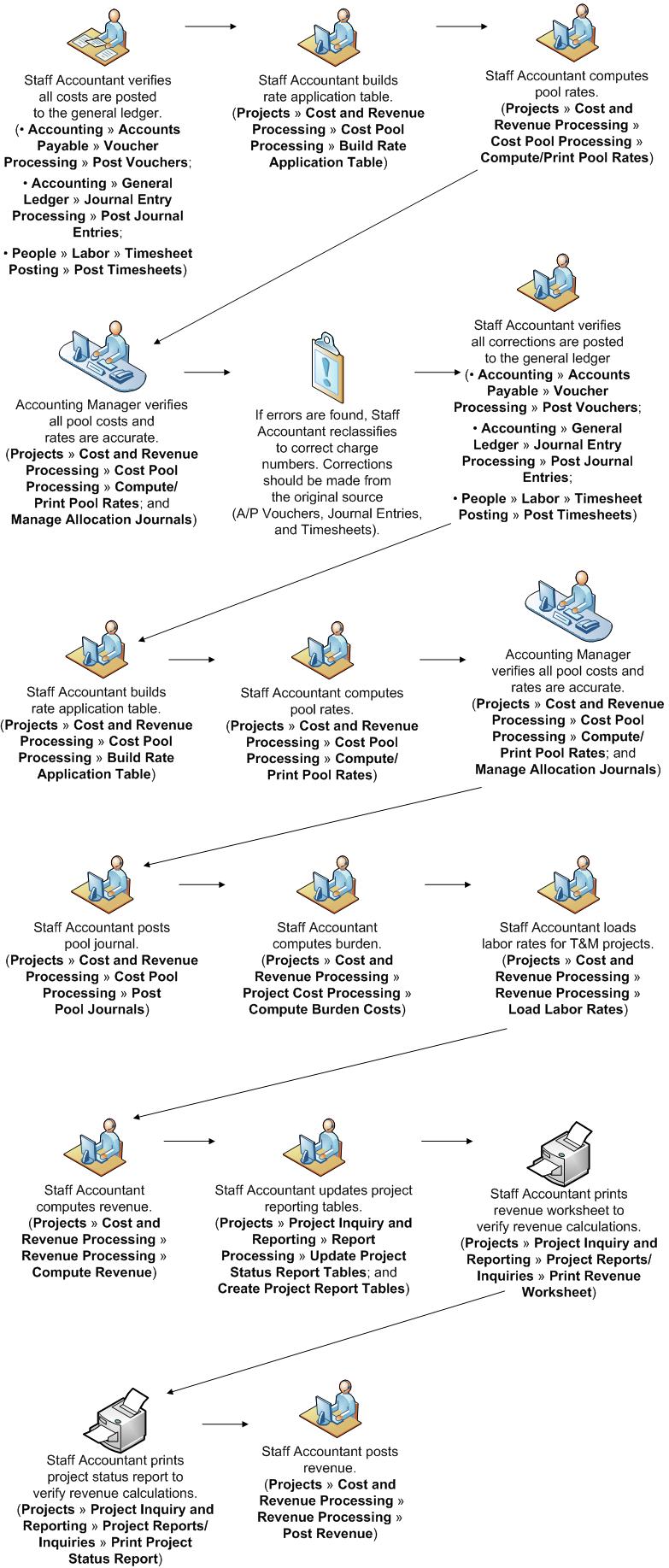 The Cost and Revenue Process Flow describes the overall process involved in the Cost and Revenue module.