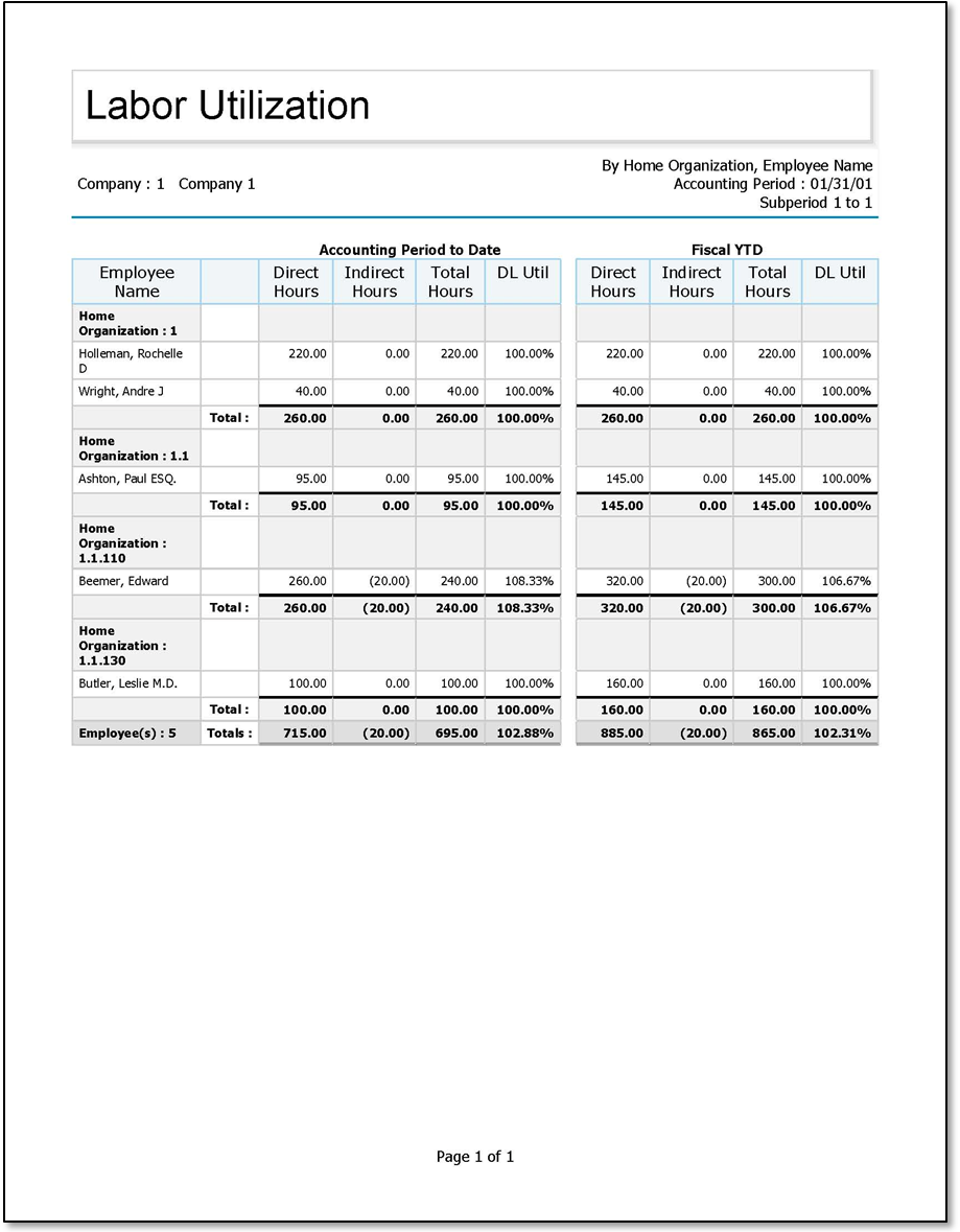 Sample Labor Utilization report.
