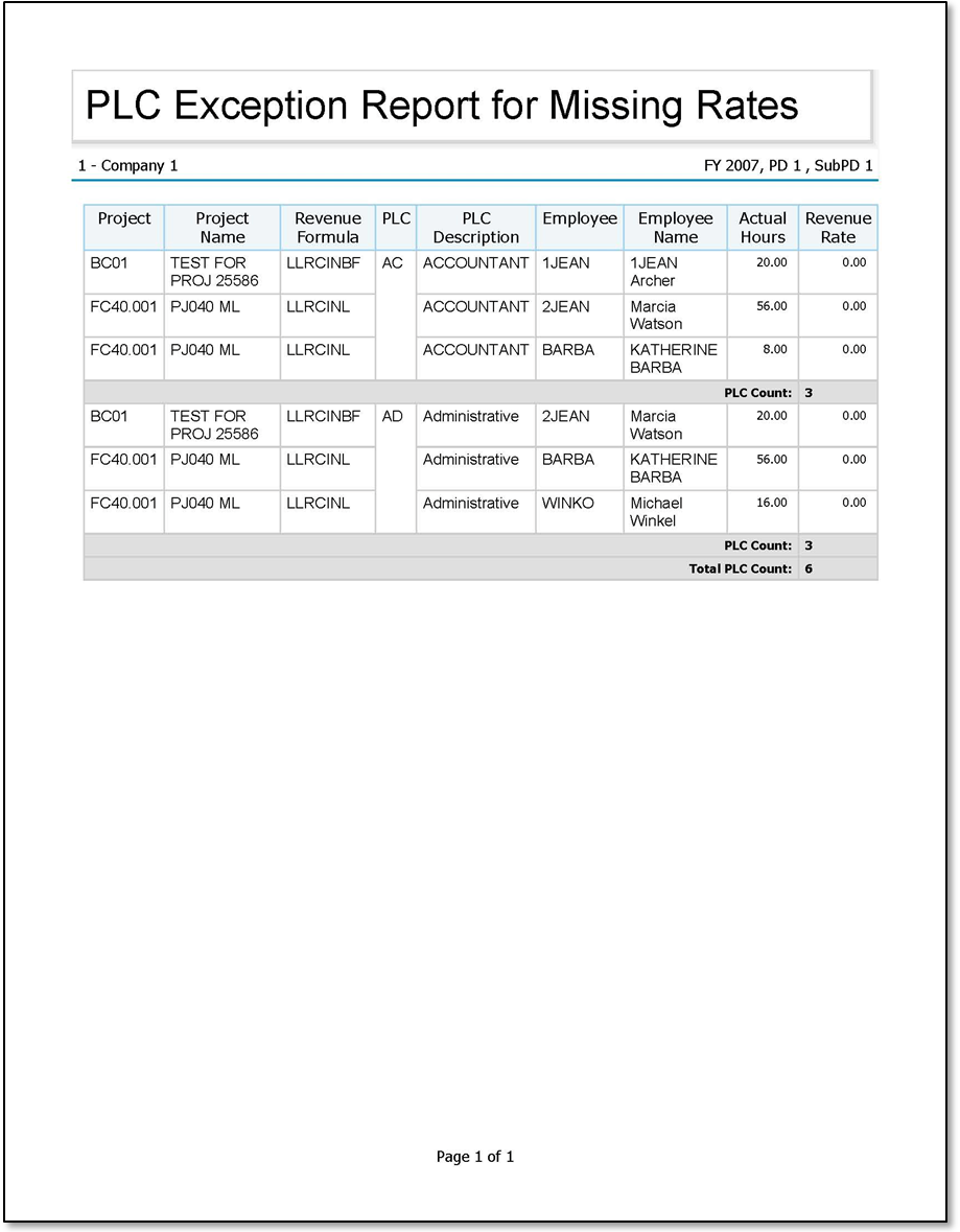 Sample Report Sample PLC Exception Report for Missing Rates report. Parent Topic: PLC Exception Report for Missing Rates HomeReports & AnalyticsWelcome to Costpoint Business IntelligenceLegacy ReportsCostpoint Enterprise ReportingProjects ReportsPLC Exception Report for Missing RatesSample Report