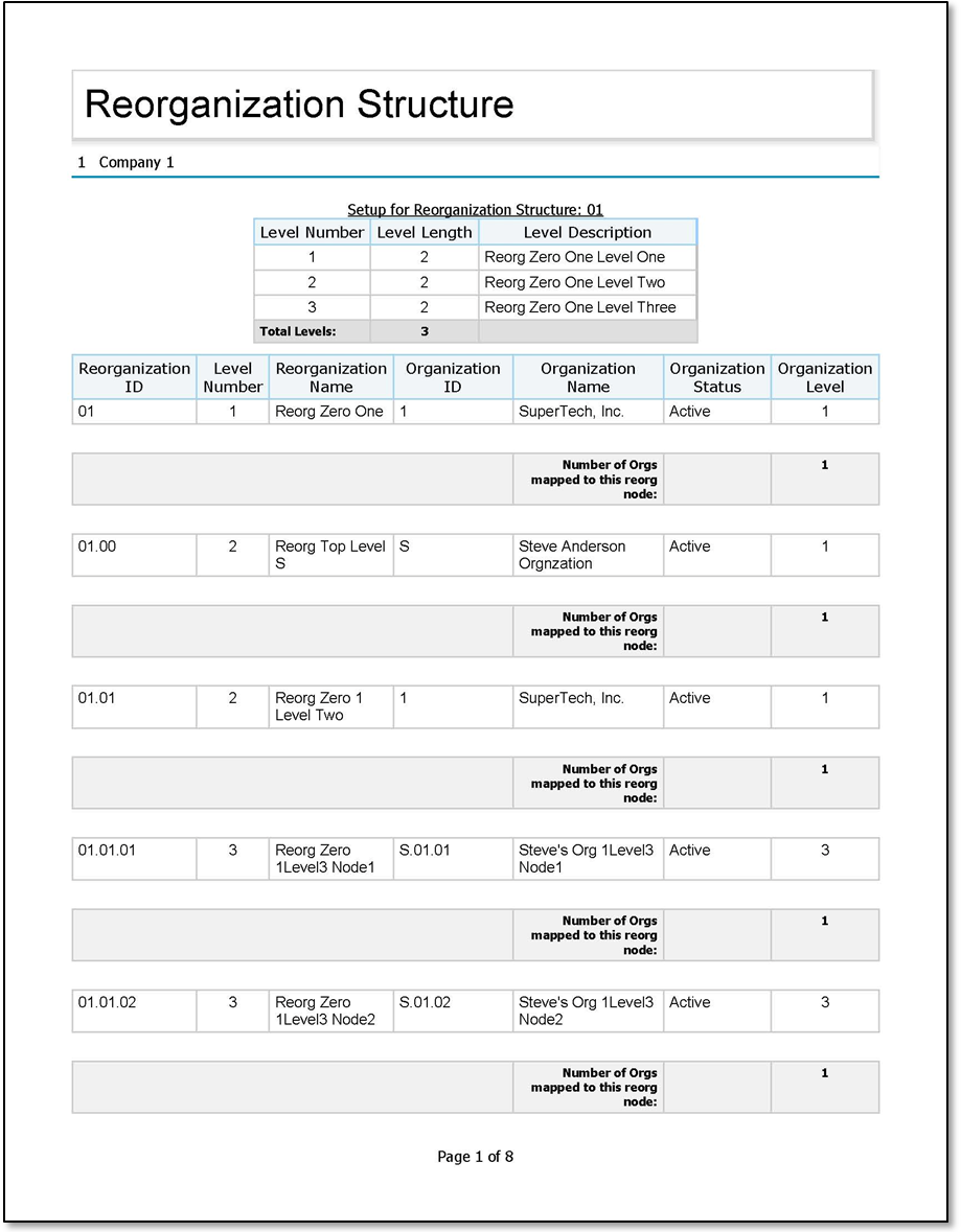 Sample Report Sample Reorganization Structure report. Parent Topic: Reorganization Structure HomeReports & AnalyticsWelcome to Costpoint Business IntelligenceLegacy ReportsCostpoint Enterprise ReportingBasic Information ReportsReorganization StructureSample Report