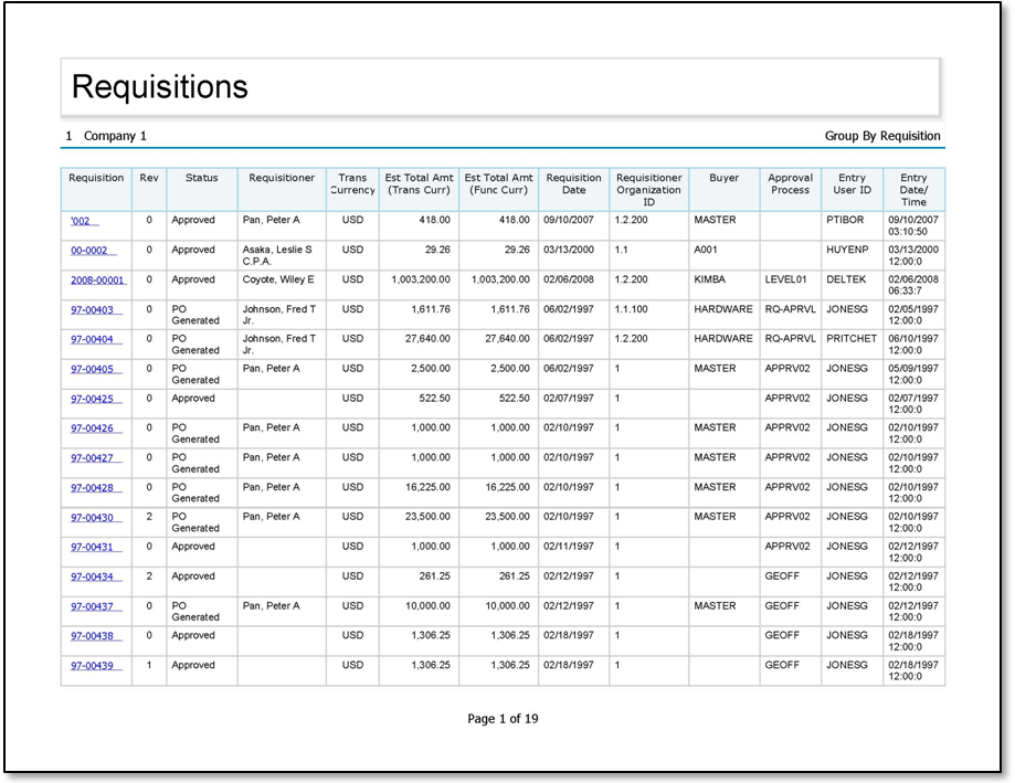 Sample Report Sample Requisitions report. Parent Topic: Requisitions Report HomeReports & AnalyticsWelcome to Costpoint Business IntelligenceLegacy ReportsCostpoint Enterprise ReportingProcurement ReportsRequisitions ReportSample Report