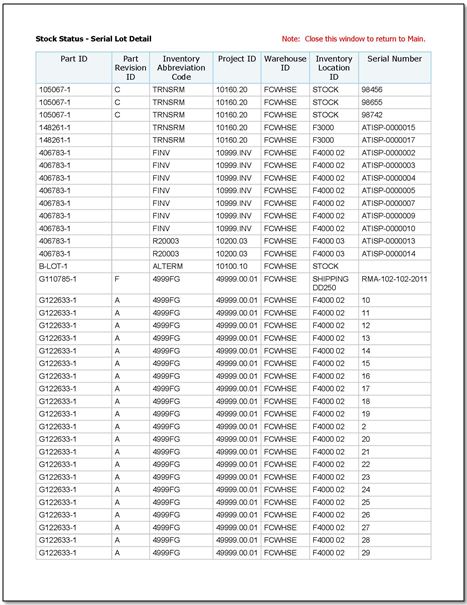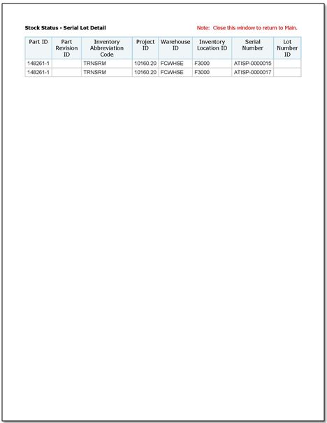 Click the Warehouse and Inventory Location ID values to drill thru the Stock Status - Serial Lot Detail.