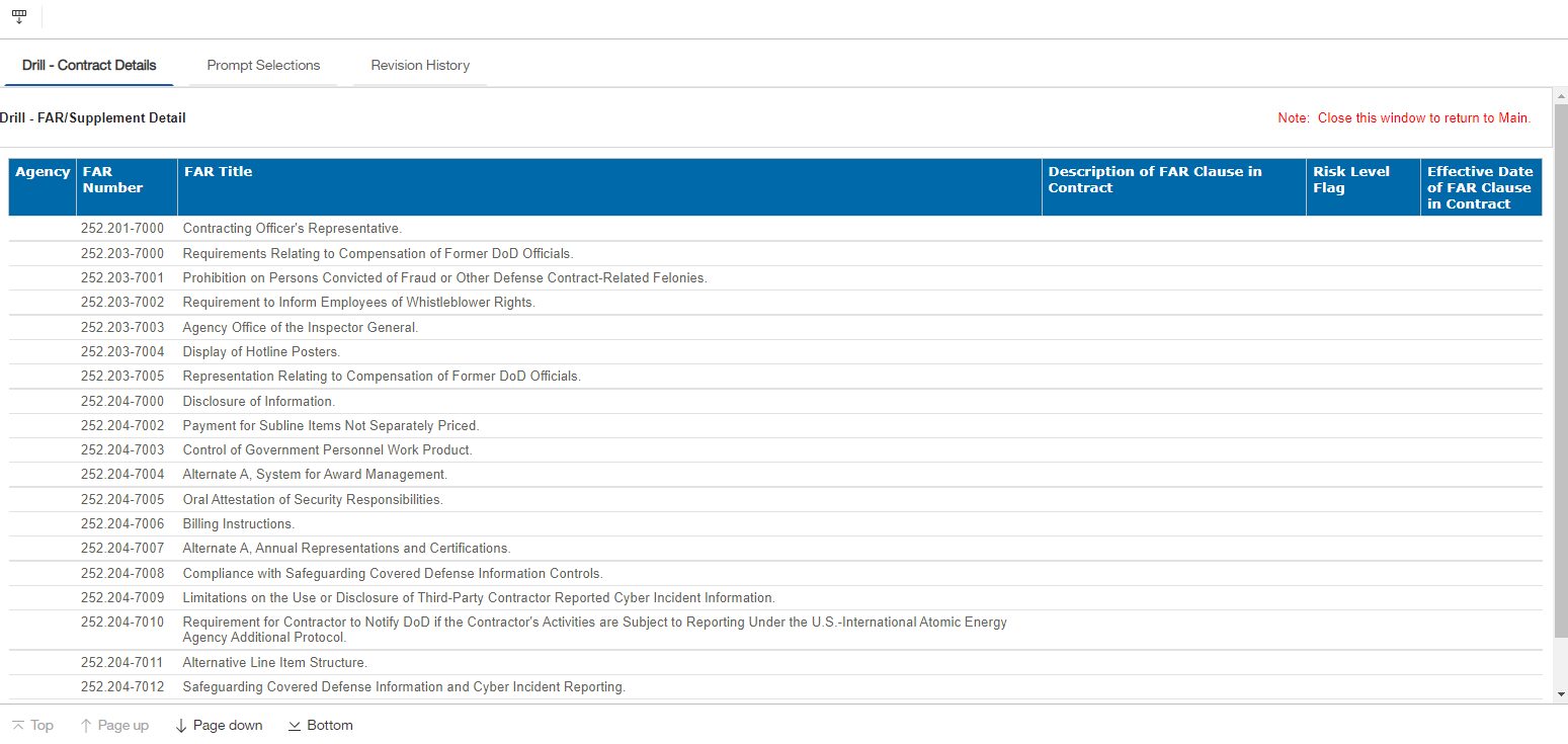 Parent Topic: Contract FAR/Supplement Report