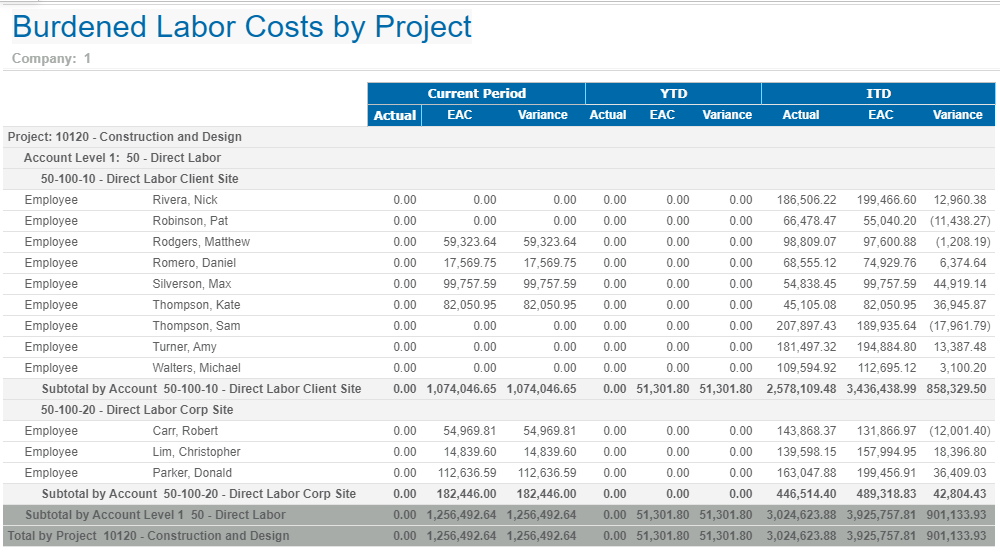 Sample Report This is a sample of the Burdened Labor Costs by Project report. Parent Topic: Burdened Labor Costs by Project HomeReports & AnalyticsWelcome to Costpoint Business IntelligencePlanningPlanning ReportsBurdened Labor Costs by ProjectSample Report