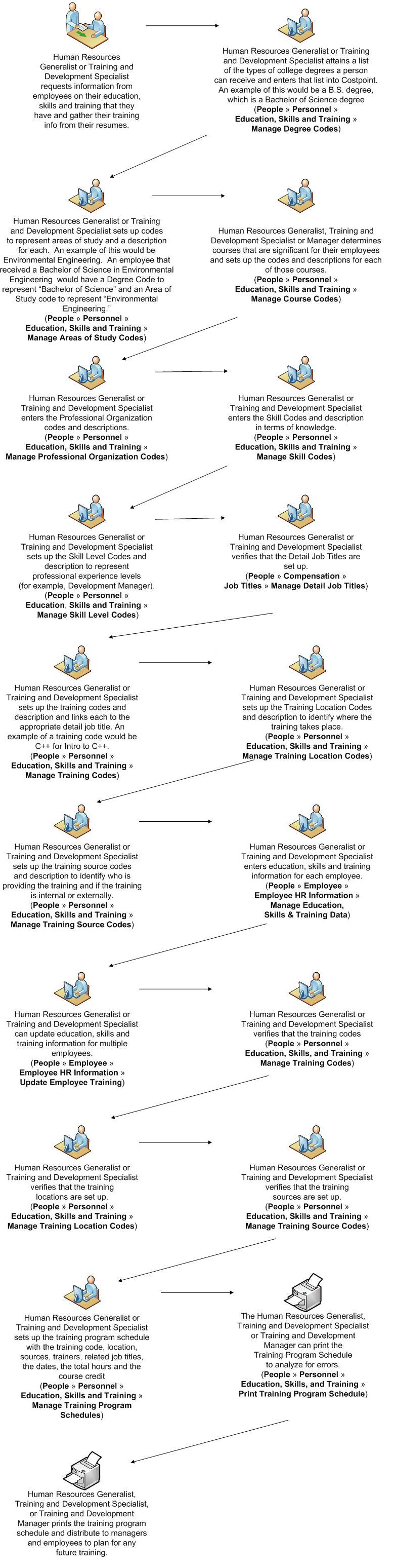 You company must perform multiple tasks in Costpoint to handle the existing and future education, skills, and training information of each employee.