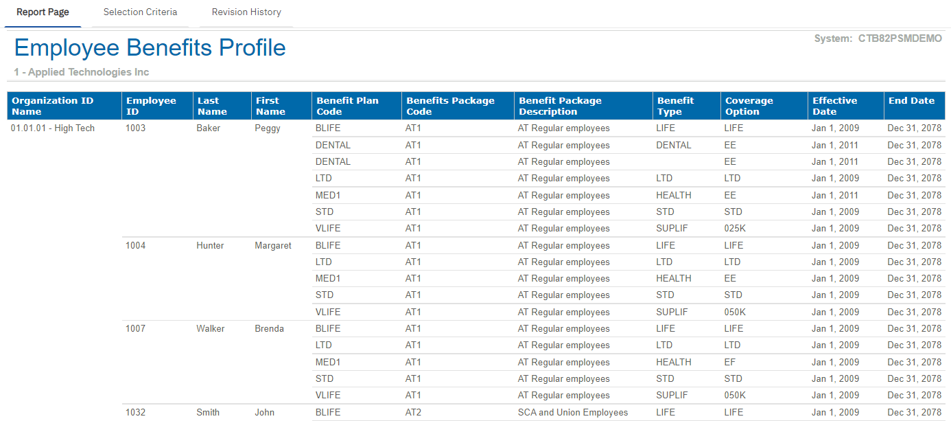 The information in the Employee Benefit Profile report is based on the organizations and employees selected for the report.