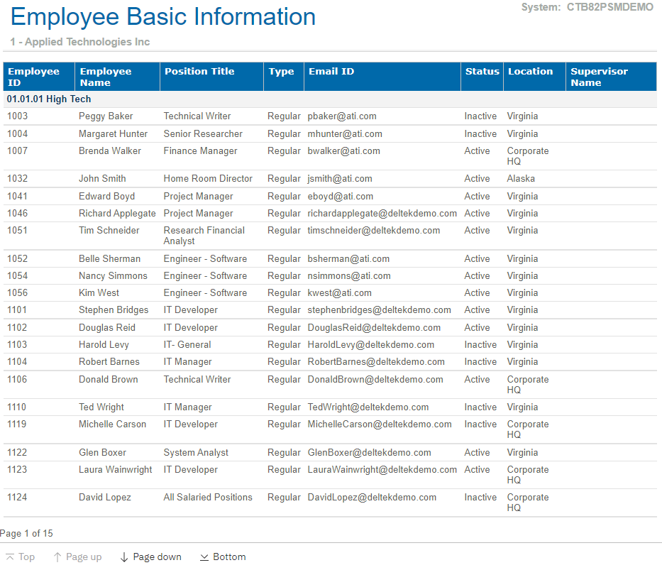 View a sample of the Employee Basic Information report.