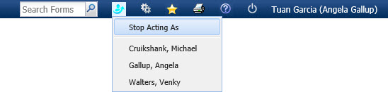 In order to use the Act As form or the Act As icon, the Act As form must be enabled in your Security Role.