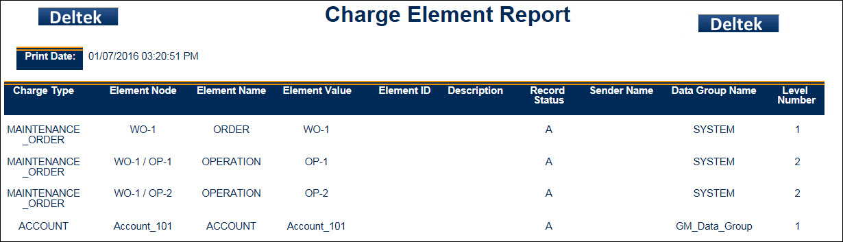 Level Number : Identifies the hierarchical level of the element. The level depends on the record's Parent Element. For example, if the Parent Element is at Level 1, the record you add to the parent will be at Level 2. Level numbers are defined for the Element Name in the Charge Type Element tab form.