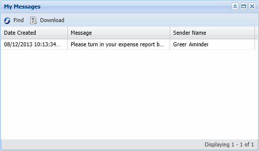 My Messages displays messages that have been sent to the employee. The columns display the content and the sender's name if the message was sent.