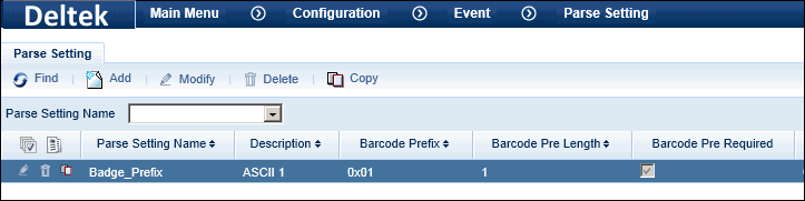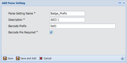 To make sure users scan their badges instead of typing the badge number, a required Barcode Prefix for the character ASCII 1 is configured in a Parse Setting.