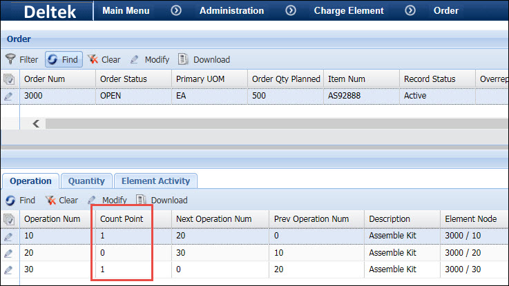 You can use the Operation tab of the Order form to enable or disable the Count Point setting for an operation.