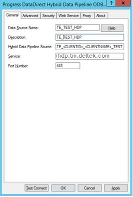 4. On the General tab of the Progress DataDirect Hybrid Data Pipeline ODBC dialog box, provide the following information: