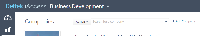 Companies area and key data (company types of roles, status, relationship to your firm, number of employees, and so on) display down the left edge.