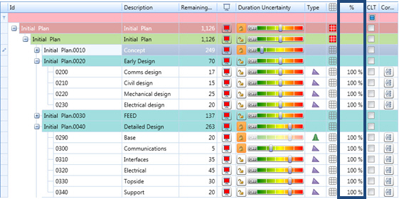 If you are not 100% certain that a task is going to happen in your schedule, you can assign a probability to the task to reflect this confidence level (for example, Re-work).
