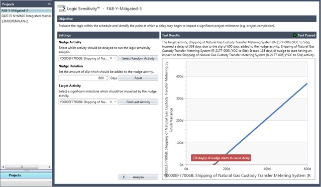 The logic sensitivity check allows you identify how potential delays affect key activities or milestones later in the project.