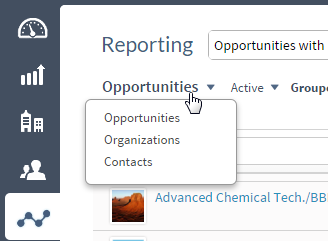 To select a report that you have saved, do any of the following in the saved reports search field next to the Reporting area title:
