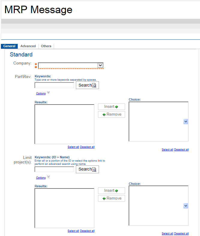 Enter a portion of one or more part/revisions in the Keywords field to be added on the report. You can use the steps in entering keywords in the Keywords fields to return the results you are looking for. |