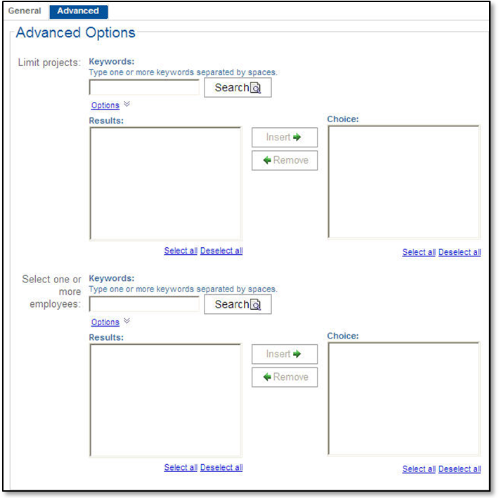 Enter a portion of one or more employee IDs in the Keywords field and click Search to list employees to include on the report. You can use the steps in entering keywords in the Keywords search fields to return the results you are looking for. |