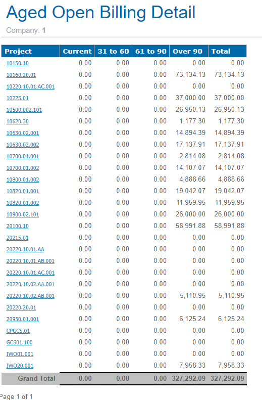 Sample Report Sample Aged Open Billing Detail report. Parent Topic: Aged Open Billing HomeReports & AnalyticsWelcome to Costpoint Business IntelligenceOverviewBillingBilling ReportsAged Open Billing Sample Report
