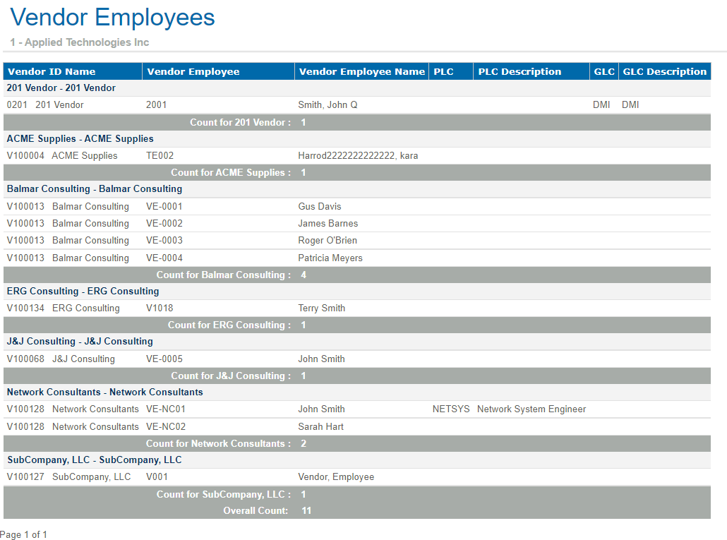 Sample Report This sample features the Vendor Employee report. Parent Topic: Vendor Employee HomeReports & AnalyticsWelcome to Costpoint Business IntelligenceOverviewAccounts Payable Accounts Payable ReportsVendor EmployeeSample Report