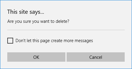 Some web browsers will also display a check box option to prevent the page from creating additional dialogs or messages.