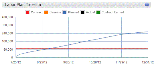 Note: You can turn chart lines on and off, except for the dotted EAC line on the Labor Plan Timeline. Click a line name in the chart legend to turn the chart line on or off.