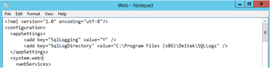 SQLLogDirectory — This is the path where the logs are stored. If there is no value, the system does not save any SQL logs. In the screenshot above, "C:\Program Files (x86)\Deltek\SQLLogs" />" is an example.