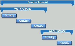 Deleting all activities linked to a work package (or all resource assignments on an activity) in a modeling session does not delete the costs or the work package. If you want to delete a work package with activities, you must use Cost Actions to delete the work package before the modeling session.Activity DatesActivities are at the lowest level. Their start date is based on the work package start date and their finish date is based on the work package start date plus the activity duration. If you delay the activity start date by adding a relationship or adding a constraint date, a new finish date is calculated by adding the duration to the start date. In the example below, the control account spans two work packages. Each work package spans the activities within that work package.