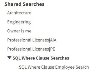 Shared searches are standard or advanced searches that you create to match your business requirements and share with other roles. When you select additional roles in the Save For field on the Save Options dialog, the custom search is automatically added under this folder.