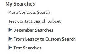 The Searches List includes all searches that are currently available to you. This list consists of different components, depending on the application from which you access it.