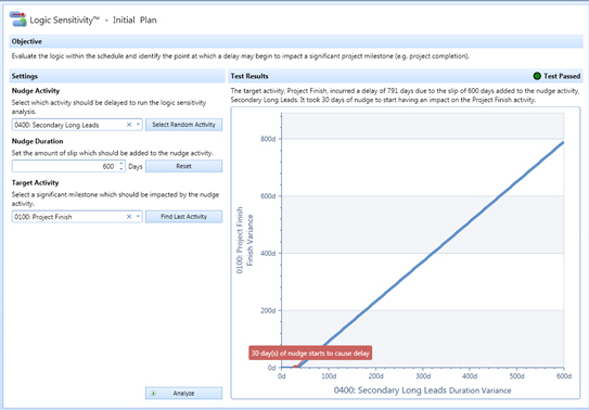 The logic sensitivity check allows you identify how potential delays affect key activities or milestones later in the project.