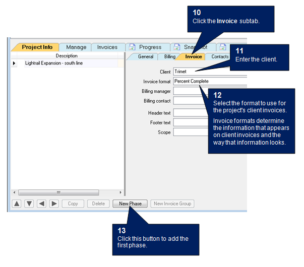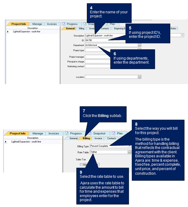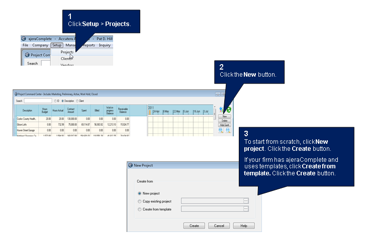 Most likely, your firm has set a policy on the type and amount of information you must enter for each project, and when you should enter it. At some firms, the project is set up by the accounting staff, at others by the project manager, and at others by a combination of both.