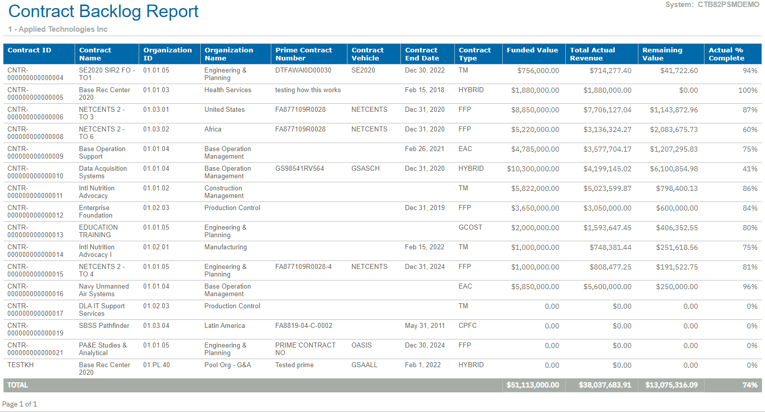 This is a sample of the Contract Backlog report.
