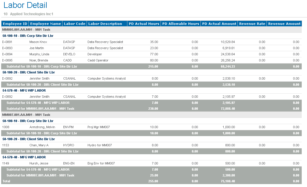 Labor Detail Report