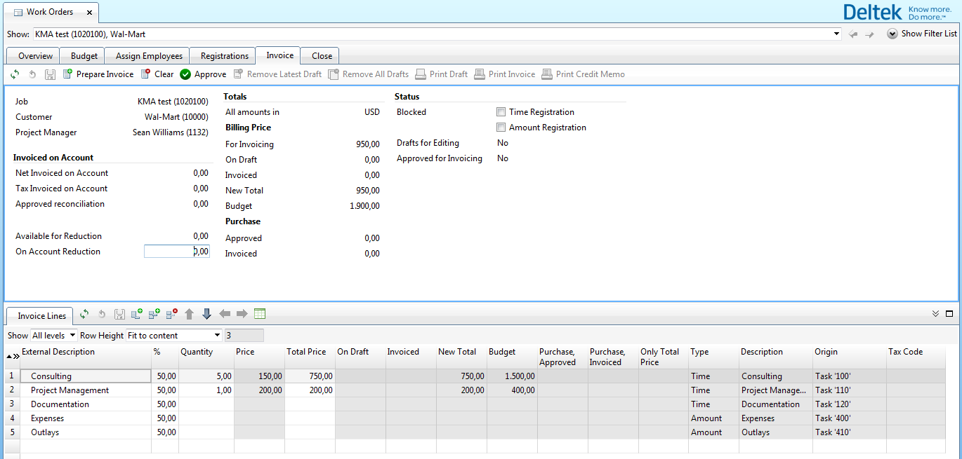 Work Orders in the Solution A simplified version of the Jobs workspace has been created to support work orders. In this workspace, you can create work orders based on a wizard and easily invoice based either on the actuals or on the job budget. Parent Topic: PSO Managing Small Jobs: Improving Billability and Cash Flow HomeMaconomy User Guides Concepts GuideSolution DescriptionsPSOPSO Managing Small Jobs: Improving Billability and Cash FlowWork Orders in the Solution