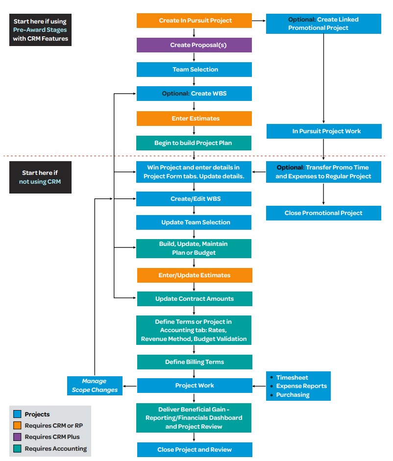 For details on these processes, review the related subtopics describing each step. For information about how to use the Vantagepoint user interface to accomplish these steps, see Projects Hub