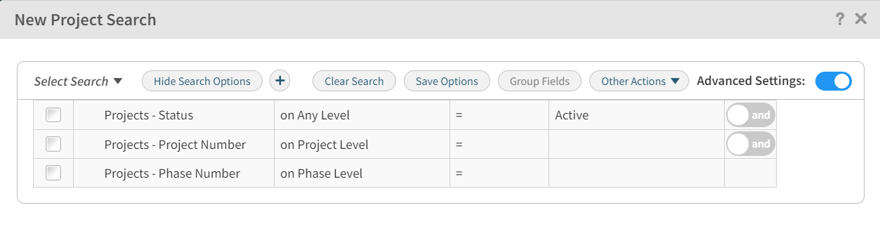 For more information, see Display Search Records by Projects Levels in Advanced Project Search.
