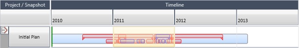 At the summary level, you can create a single ribbon that contains all activities within the project. The example below shows a ribbon view of the same sample project where a single ribbon is created for the entire sample project.