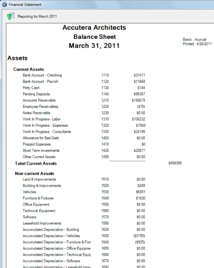 Use the Balance Sheet to review the basic financial position of your company, in a cash or accrual basis.