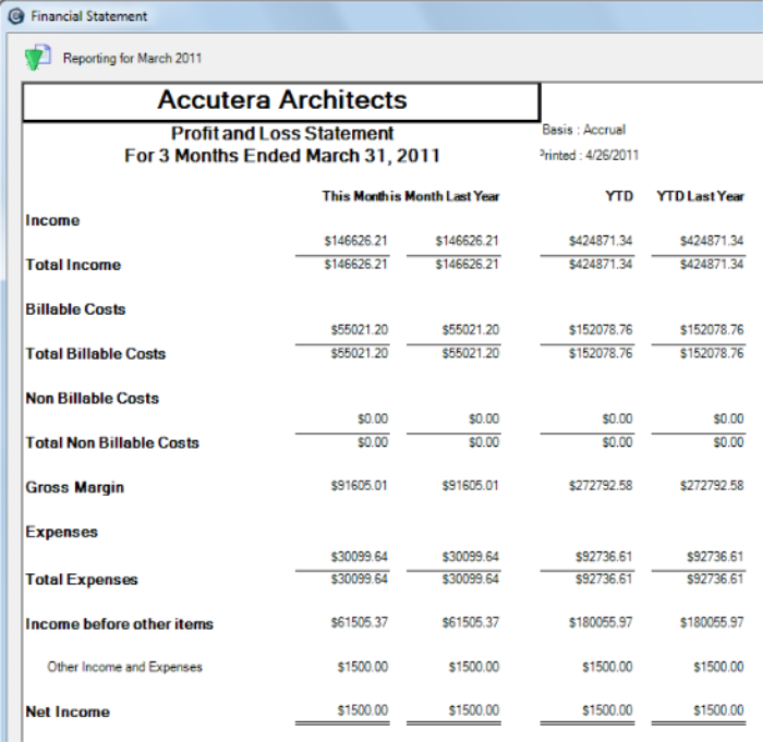 You can also create and print a Profit and Loss Statement using the Financial Statement Designer. For more information, see this topic in help: Changing the Profit and Loss Statement template design. To return to this course, click the Back button.