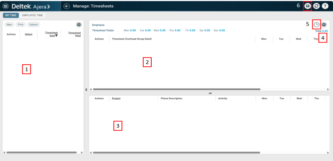 - In the left pane, you can view current timesheets, create new timesheets, or print timesheets.