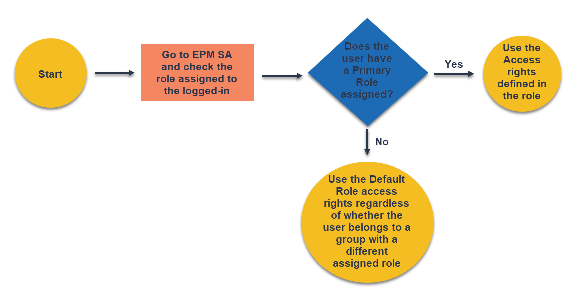 Application-level security pertains to menu items that are secured based solely on the user’s Primary Role in EPM Security Administrator or PPM Administrator. If a Primary Role is not defined for a user, Cobra uses the access rights defined for the DEFAULT role in EPM Security Administrator or PPM Administrator to secure a menu item.